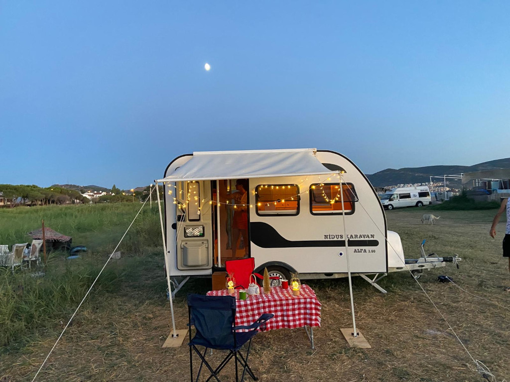 - Camlı ve perde sinekli ABS kaplı, içten kilitli, çöp kutusu ile fonksiyonlu karavan kapısı