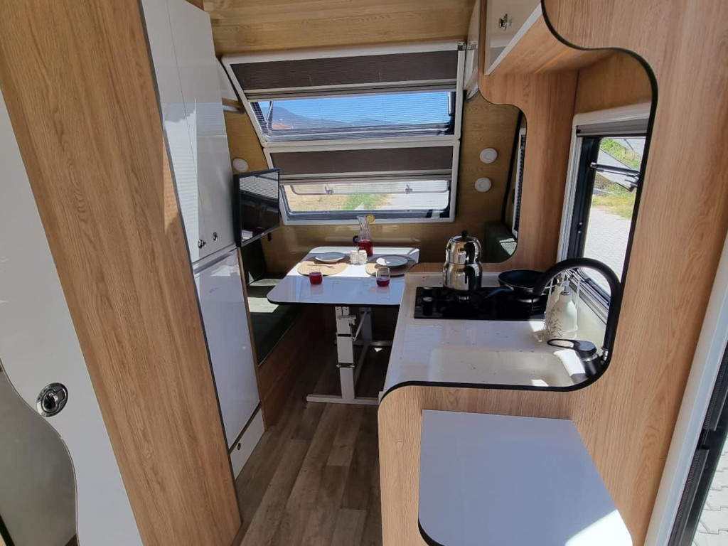 - Camlı ve perde sinekli ABS kaplı, içten kilitli, çöp kutusu ile fonksiyonlu karavan kapısı